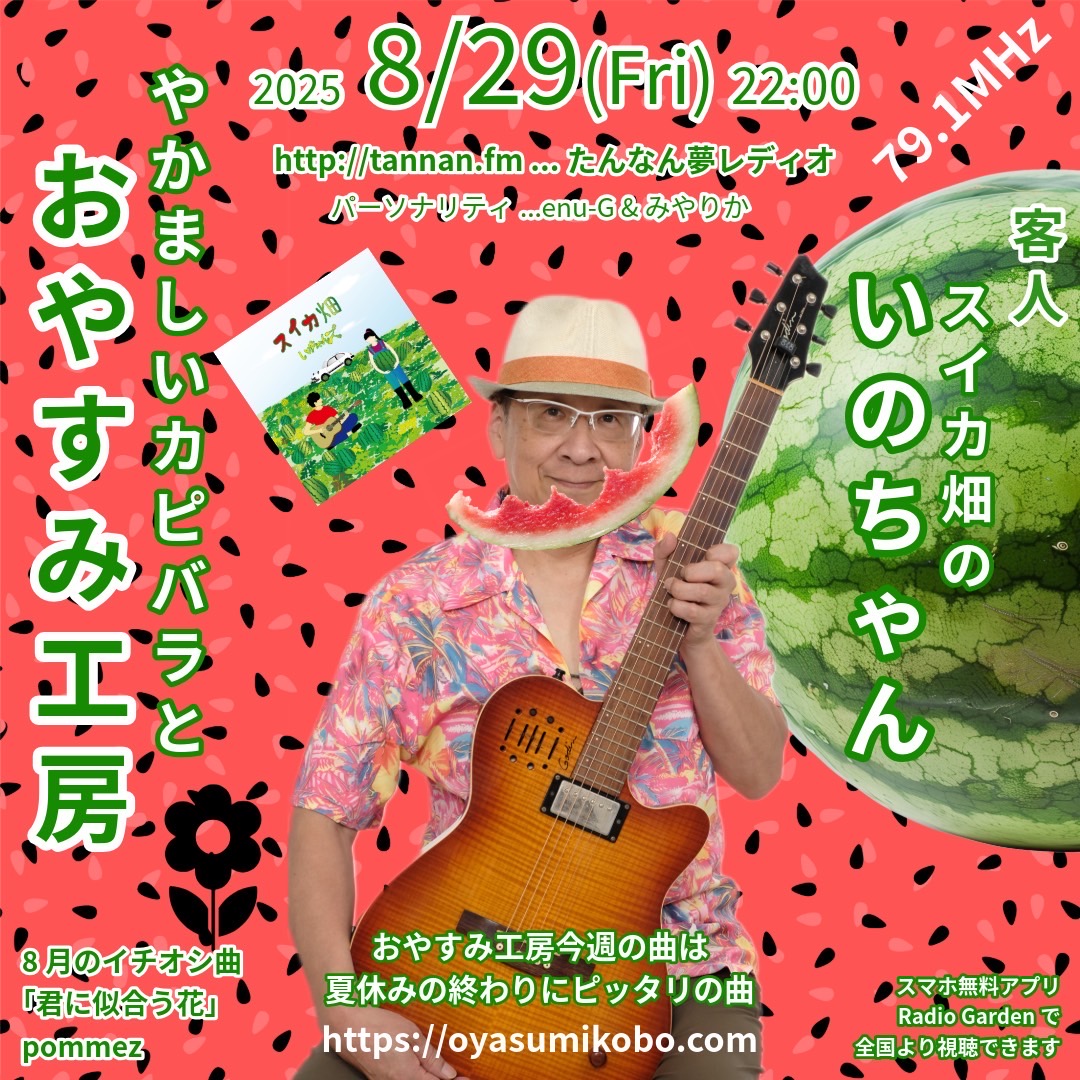 おやすみ工房が音楽色豊かになります! オンエアー 毎週金曜日22時たんなん夢レディオ地域外の方は、スマホ無料アプリ、「Radio Garden」で聴けます! また、たんなん夢レディオのサイトにて生ストリーミング配信でもリアルタイムで聴けます